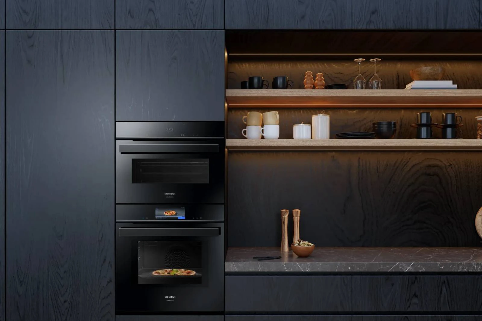 Siemens représente l’excellence en électroménager encastrable avec des appareils alliant technologie de pointe et design épuré. Dans nos showrooms de Nyon, Etoy et Crissier, découvrez fours multifonctions, tables de cuisson à induction, hottes silencieuses, réfrigérateurs intelligents et lave-vaisselle économes. Chaque produit Siemens combine innovations pratiques et élégance contemporaine. L’électroménager cuisine Siemens se distingue par son interface intuitive et ses finitions premium qui s’intègrent parfaitement dans votre aménagement.
