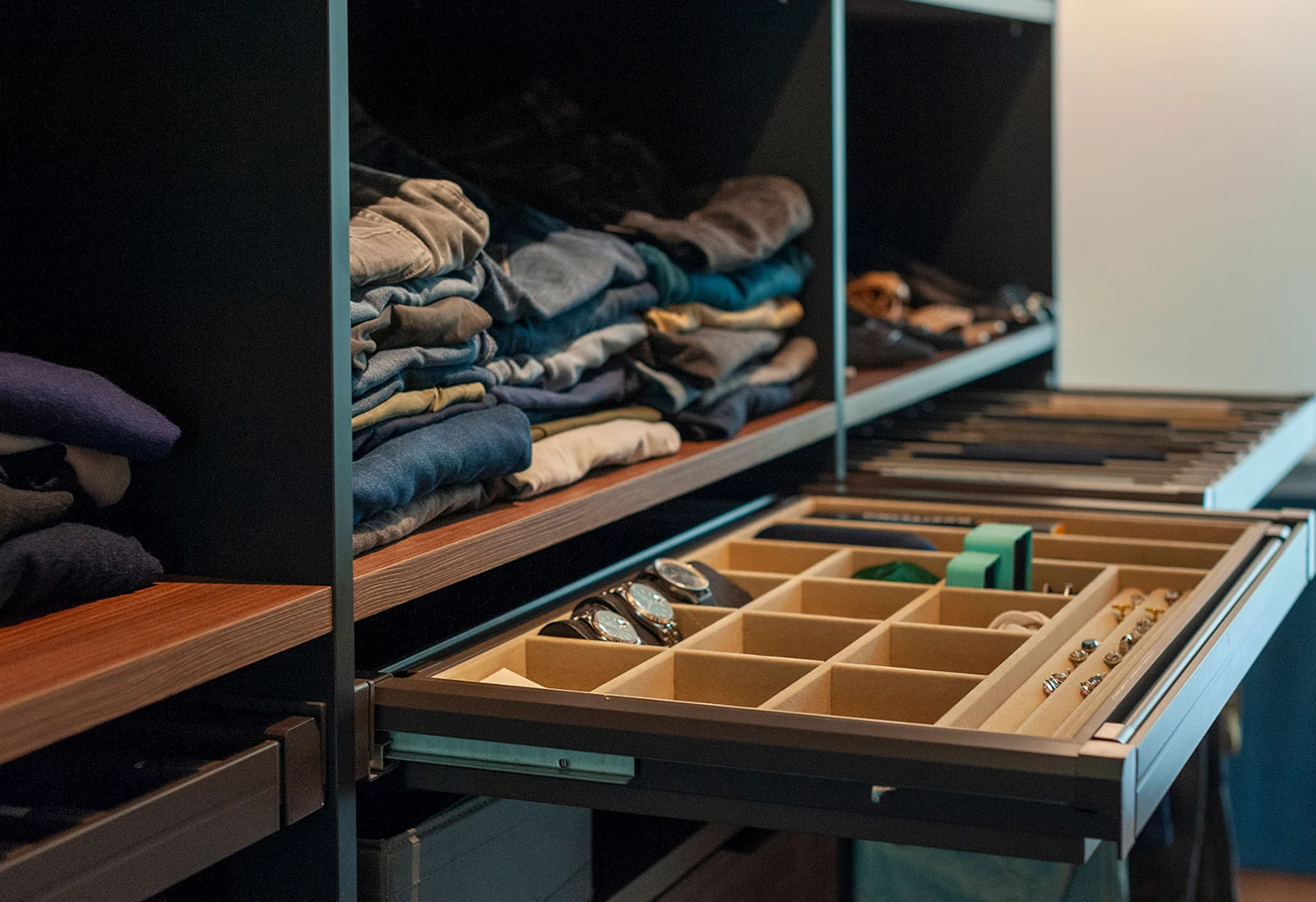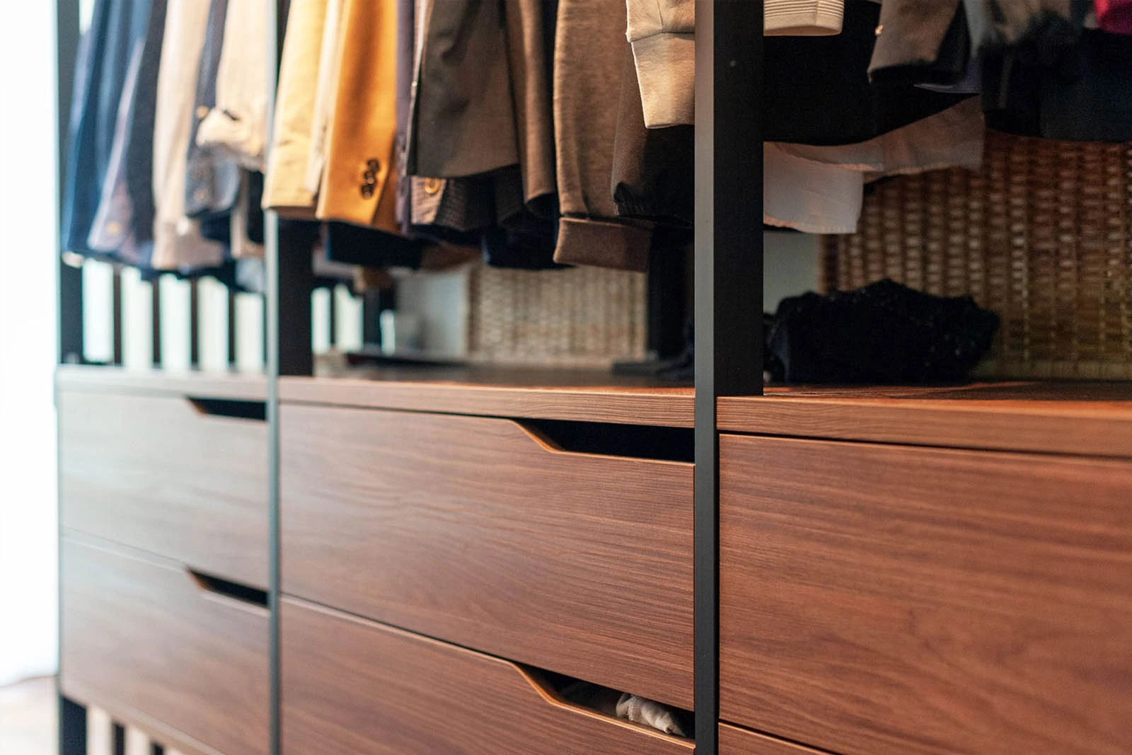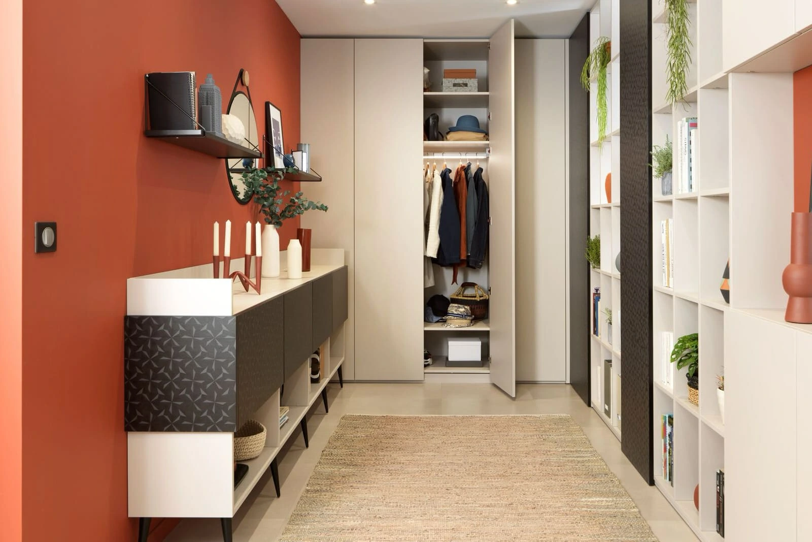 Nos solutions de rangement innovantes transforment votre espace en un dressing intégré harmonieux et fonctionnel. Dans nos showrooms d’Etoy, Crissier et Nyon, découvrez comment nos artisans créent des systèmes sur mesure qui répondent parfaitement à chaque besoin. Que vous recherchiez un dressing compact pour optimiser un petit espace ou une pièce dédiée luxueuse, nous concevons des aménagements où chaque détail a été pensé pour vous faciliter la vie quotidienne.