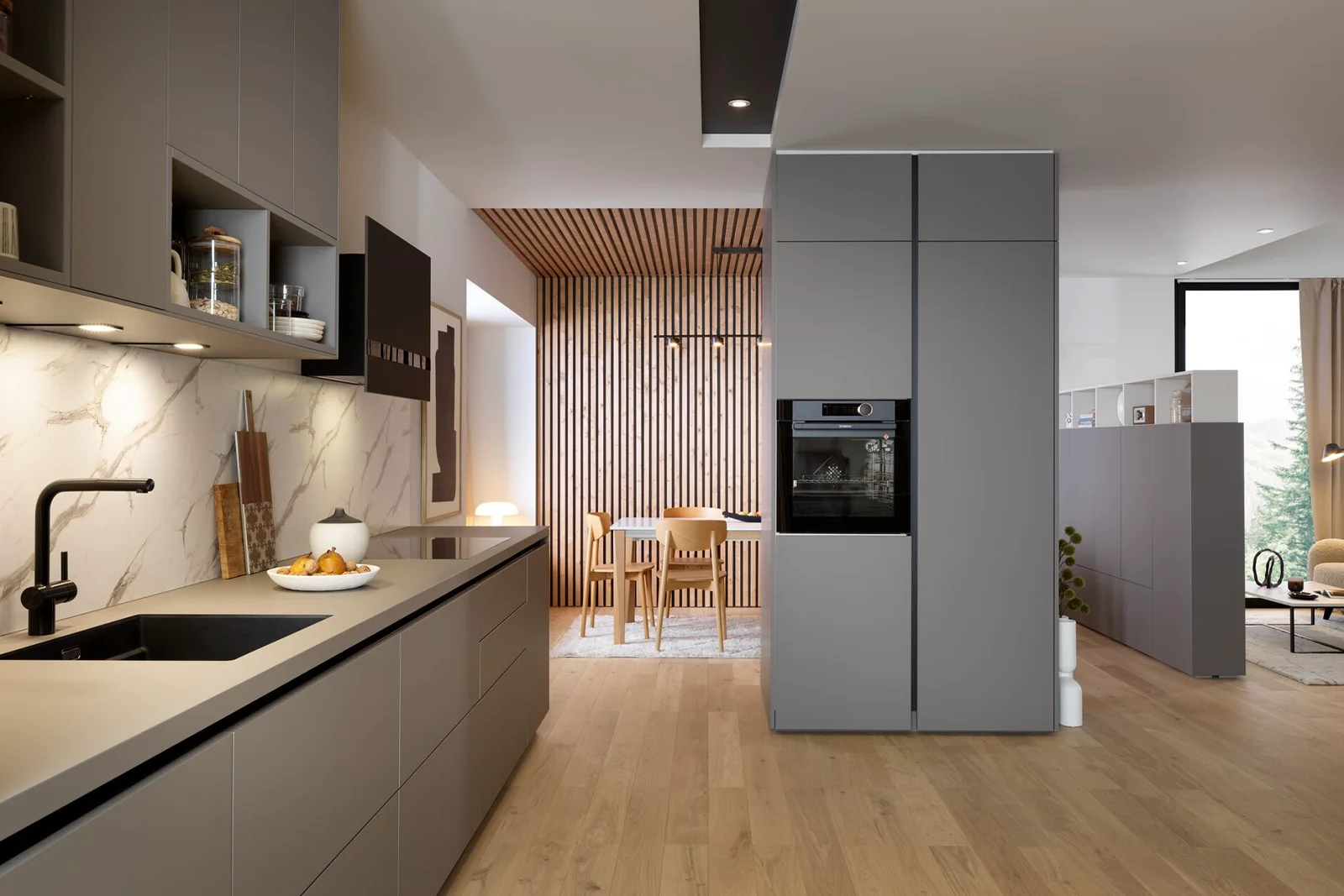 Nos cuisines sur mesure deviennent le cœur de la maison : un lieu où se mêlent art de vivre, créativité culinaire et bien-être en famille. Grâce à un large éventail de configurations, chaque cuisine devient unique, comme vous.